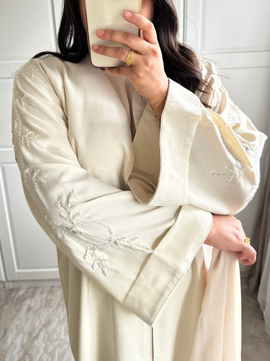 Misha Longline Knitted Balloon Sleeve Cardigan in Cream