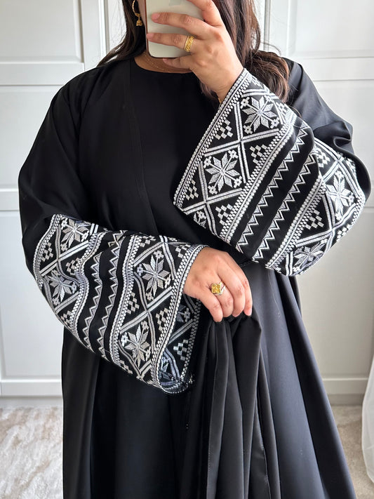 Ella Collared Geometric Abstract Maxi Dress in Black