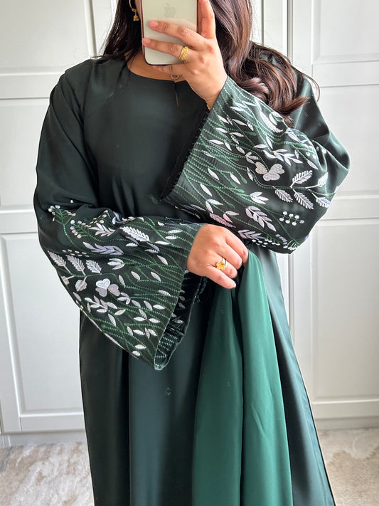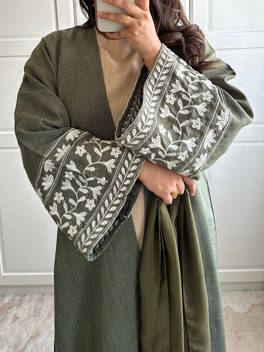 Misha Longline Knitted Balloon Sleeve Cardigan in Sage Green