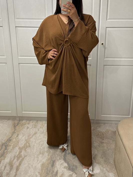 Kahina 2 Peice Dress and Cardigan Set in Caramel