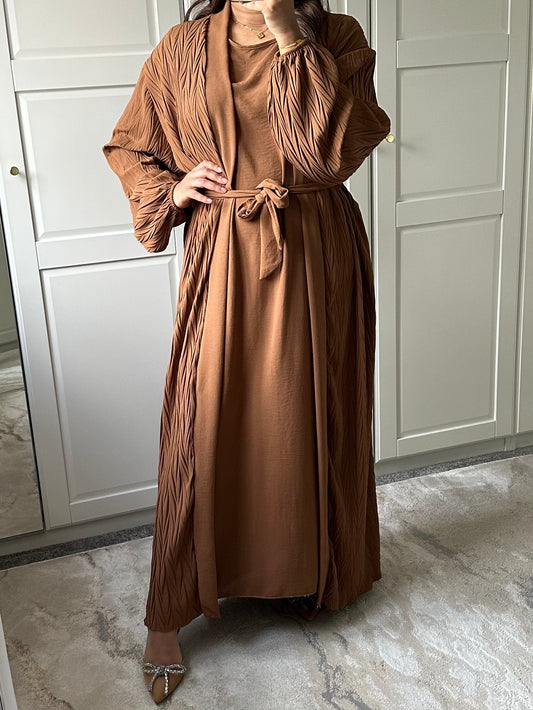 Kahina 2 Peice Dress and Cardigan Set in Caramel